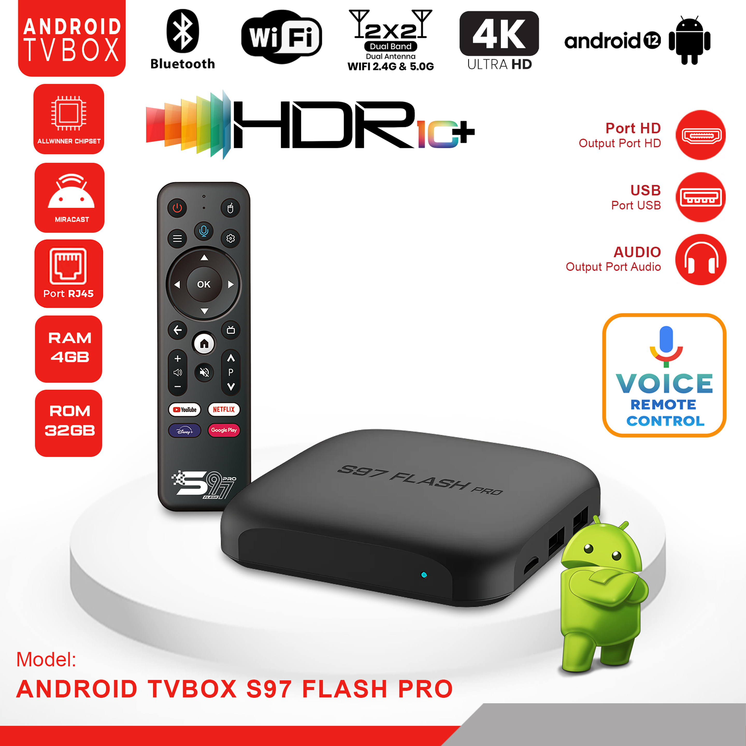 S97 Flash Pro AndroidTV Ram 4Gb Rom 32GB Voice